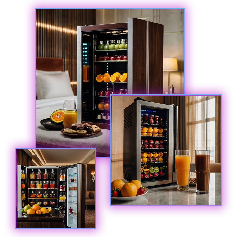 Callisto Technologies’ mini bars are a blend of style and efficiency, providing guests with a selection of refreshments. These compact, energy-efficient units maintain optimal temperatures and stock levels, offering a convenient and enjoyable experience for hotel guests while maximizing space.